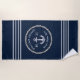 Nautic Navy Blue Boat Name Anchor Rope Beach Handtuch