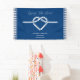 Modernes nautisches Hochzeitsbanner mit einem skurril-romantischen weißen Herz, der in einem marineblau blauen Rahmen mit Seilakzenten und Streifen angezeigt wird. Weiße Schrift. Klassische marineblau-blaue und weiße Farbe.