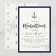 Elegante nautische Probe Dinner Einladungen, mit Aquarellanker mit Seil in Marineblau und Kompass, mit modernen handgeschriebenen Skripten, DIY Hintergrundfarbe, Rahmen und Schriftart betont. Copyright © 2016-2019 Bombino Designs.