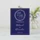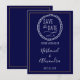Eine minimale nautische Save the Date-Karte. Ein weißer Seilkranz auf marineblau-blauem Hintergrund mit einem goldenen Rahmen und die Namen von Braut und Bräutigam in elegantem Drehbuch. Teil der Nautical Sailboat Minimal Wedding Suite.