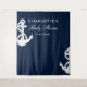 Die moderne nautische Marine blauen Anker Script Baby Duwer Hintergrund Tapestry, die Sie leicht anpassen können, indem Sie auf die Schaltfläche "Personalisieren". Die elegante und minimalistische Babydusche mit Bootanker und moderner Typografie auf marineblau-blauem Hintergrund.