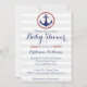 Diese bezaubernden nautischen Anker-Einladungen sind perfekt für Mädchen & Jungen Duschen! Sie sind mit einem hellgrauen Streifen versehen. Auf dem Hintergrund befindet sich ein roter Seilzirkel mit einem marineblauen Anker.