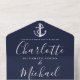 Nautical Anchor Navy Blue and White Script Hochzei All In One Einladung