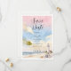 This sophisticated card features a harmonious maritime scene that captures the essence of the coast at sunset. The design highlights a central illustration of a classic lighthouse in white and gray tones, accompanied by a vintage anchor and a delicate selection of seashells and starfish. The color palette consists of soft pastel tones, where pink and orange skies blend with a calm turquoise blue ocean. The entire visual ensemble is enhanced with an elegant watercolor effect that provides an artistic, ethereal, and highly romantic texture, ideal for exclusive celebrations.