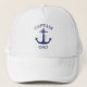 Captain Dad reads the text on this nautical themed hat featuring a navy blue anchor with rope. Perfekt for sea loving dads on Father's Day, birthdays and other special chance.