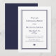 Nautical Marine Blue Krab Hochzeit Probe Dinner Einladungen. Front - weiß mit doppelmarineblau blauem Rand, Block und Skript navy blauen Text und Marine-blauen Crab-Illustration unten Mitte. Zurück ist massiv und blau.
