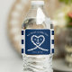 Wasserflaschen-Etiketten aus nautikblau-weißem Hochwasser. Ideal für eine Hochzeit der Marine (Militär) oder des Seehauses. Das Design besteht aus einem herzenförmigen Seil mit Anker und einigen Initialen in der Mitte. Personalisieren Sie es mit Ihren Hochzeitsdetails.