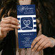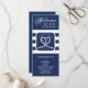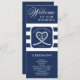 Nautikblau-weiß gestreiftes Hochzeitsprogramm. Ideal für eine Hochzeit der Marine (Militär) oder des Seehauses. Das Design besteht aus einem herzenförmigen Seil mit Anker und einigen Initialen in der Mitte. Personalisieren Sie es mit Ihren Hochzeitsdetails.