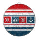 Schönes Design mit Segelboot, Anker, Kompass und Dekoration von Segelrädern auf gestreiftem Hintergrund
