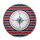 Nautisches Design mit Kompassdekoration in runder Form mit Sternen auf rot, blau und weiß gestreiftem Hintergrund
