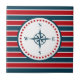 Nautisches Design mit Kompassdekoration in runder Form mit Sternen auf rot, blau und weiß gestreiftem Hintergrund