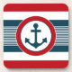 Nautical design with anchor decoration in round shape on blue, red and white striped background