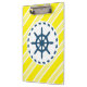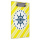 Schönes Design mit Dekoration der Segelräder auf gelb-weiß gestreiftem Hintergrund