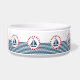 Schönes Design mit runder Dekoration der Segelboote auf blau-weiß gestreiftem Hintergrund