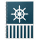 Schönes Design mit Segelrad und blau-weiß gestreifter Dekoration auf blauem Hintergrund