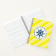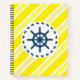 Schönes Design mit Dekoration der Segelräder auf gelb-weiß gestreiftem Hintergrund