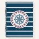 Nautisches Design mit Kompassdekoration in runder Form auf blau-weiß gestreiftem Hintergrund