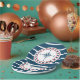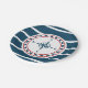 Nautisches Design mit Kompassdekoration in runder Form auf blau-weiß gestreiftem Hintergrund
