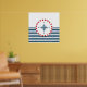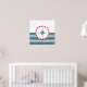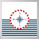 Nautisches Design mit Kompassdekoration in runder Form auf blau-weiß gestreiftem Hintergrund