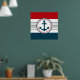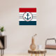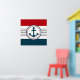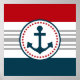 Nautisches Design mit Ankerdekoration in runder Form auf blau, rot, grau und weiß gestreiftem Hintergrund