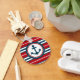 Nautisches Design mit Ankerdekoration in runder Form auf rot, blau und weiß gestreiftem Hintergrund