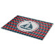 Schönes Design mit runder Dekoration der Segelboote mit Sternen auf rot, blau und weiß gestreiftem Hintergrund