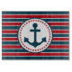 Nautisches Design mit Ankerdekoration in runder Form mit Sternen auf rot, blau und weiß gestreiftem Hintergrund