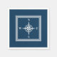 Nautisches Design mit Kompassdekoration in gestreiften Quadraten auf blauem Hintergrund