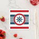 Schönes Design mit runder Dekoration der Segelräder auf blau, rot und weiß gestreiftem Hintergrund
