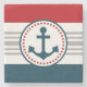 Nautisches Design mit Ankerdekoration in runder Form auf blau, rot, grau und weiß gestreiftem Hintergrund
