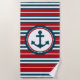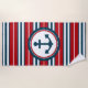 Nautisches Design mit Ankerdekoration in runder Form auf rot, blau und weiß gestreiftem Hintergrund