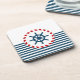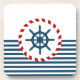 Nautisches Design mit runder Dekoration der Segelräder auf blau-weiß gestreiftem Hintergrund
