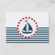 Schönes Design mit runder Dekoration der Segelboote auf blau-weiß gestreiftem Hintergrund