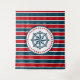 Nautisches Design mit Kompassdekoration in runder Form mit Sternen auf rot, blau und weiß gestreiftem Hintergrund