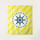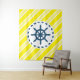 Schönes Design mit Dekoration der Segelräder auf gelb-weiß gestreiftem Hintergrund