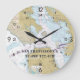 Show off your home port with this acrylic (and therefore safer for boating!) San Francisco, San Francisco / Marin County, California latitude longitude nautical chart wall clock in that space above your boat's chart table. You know it matches perfectly, being that your charts and this clock are all the standard, authentic blue, tan, and white so many boaters have come to associate with charting your course. This clock also makes a great accent piece to your den or other beach- or boating-themed room or office. This clock is customizable, so you can change 'San Francisco' to any other location, and change the latitude and longitude (which currently points to Beautiful Golden Gate Bridge) to match. The navigation chart which is the background shows the San Francisco coastline.