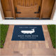 Nautical Navy Blue Welcome Aboard Boat Name Whale Fußmatte