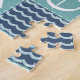 Ein inspiriertes Muster von stürmisch-türkisfarbenen Plätzen, die mit einem weißen Segelboot und Anker dekoriert sind, und die tiefmarineblauen Plätze, die mit blassblauen Chevrons und Wellen geschmückt sind, werden durch die weißen Stiche unterstrichen, um ein klassisches nautisches Ambiente zu schaffen.