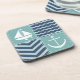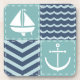 Ein inspiriertes Muster von stürmisch-türkisfarbenen Plätzen, die mit einem weißen Segelboot und Anker dekoriert sind, und die tiefmarineblauen Plätze, die mit blassblauen Chevrons und Wellen geschmückt sind, werden durch die weißen Stiche unterstrichen, um ein klassisches nautisches Ambiente zu schaffen.