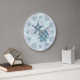 Ein inspiriertes Muster von stürmisch-türkisfarbenen Plätzen, die mit einem weißen Segelboot und Anker dekoriert sind, und die tiefmarineblauen Plätze, die mit blassblauen Chevrons und Wellen geschmückt sind, werden durch die weißen Stiche unterstrichen, um ein klassisches nautisches Ambiente zu schaffen. Ein Seestern und eine Muschel verdecken das Design in der Mitte, während ein anderer Stil von Seesternen die Zahlen für diese Uhr umrahmt.