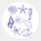 Nautical Seashell Sticker - Blue Line Art Ocean