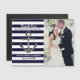 Fügen Sie Ihre Hochzeit Foto zu diesem nautischen Thema Hochzeit danke Ihnen Magnet. Das Design umfasst marineblau-weiße Streifen und einen silbernen Anker.