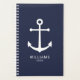 Moderne minimaliste planificateur nautique avec ancre blanche avec nom personnalisé et année en blanc moderne sans serif style de police sur arrière - plan bleu marine. Parfait comme cadeau pour le jour de l'an et toutes les occasions spéciales.