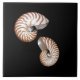 6" x 6" Keramik Kachel, schwarzer Hintergrund mit 2 schönen Nautilus Muscheln.
