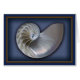 La moitié intérieure d'une coquille de nautilus demi sur un tapis bleu a placé à l'intérieur d'un effet de boîte d'ombre.