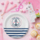 nautisch, Schiffsname, Anker Blaue Streifen Pappteller
