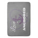 Badematte zum Thema Strand in grau, lila und weiß. Herz und Anker mit Kette. Liebe ist hier verankert. In jedem Badezimmer sieht das Thema Nautik großartig aus.