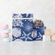 Cooles blau-weiß gefärbtes Papier mit Muscheln, Korallen, Algen und Seestern.