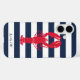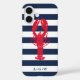 Mit diesem schicken gestreiften Gehäuse machen Sie Ihr Handy für die sommerlichen Partys am Strand und die Klammerkuchen fertig! Das Design umfasst breite nautische Streifen in Marineblau und Weiß mit einer roten Hummerillustrierung und Ihrem 3-initialen Monogramm in Marine.
