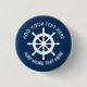 Nautische Rad-Pinback-Buttons mit benutzerdefiniertem Text. Blaues und weißes Schiffshilfslogo mit geschwungener Textvorlage. Fun Gastgeschenk Zubehör für Geburtstagsparty, Beach Hochzeit in Urlaubsort, Brautparty, Babydusche, Ruhestand etc. Fügen Sie Ihren eigenen Namen oder ein lustiges Zitat hinzu. Erstellen Sie Ihre eigenen Rundnamen Abzeichen mit maritimen Thema. Auch gut für Bootsführer auf Segeltörns / Bootsausflüge. Ändern Sie die Menge, um den billigen Bulk-Preis zu erhalten.